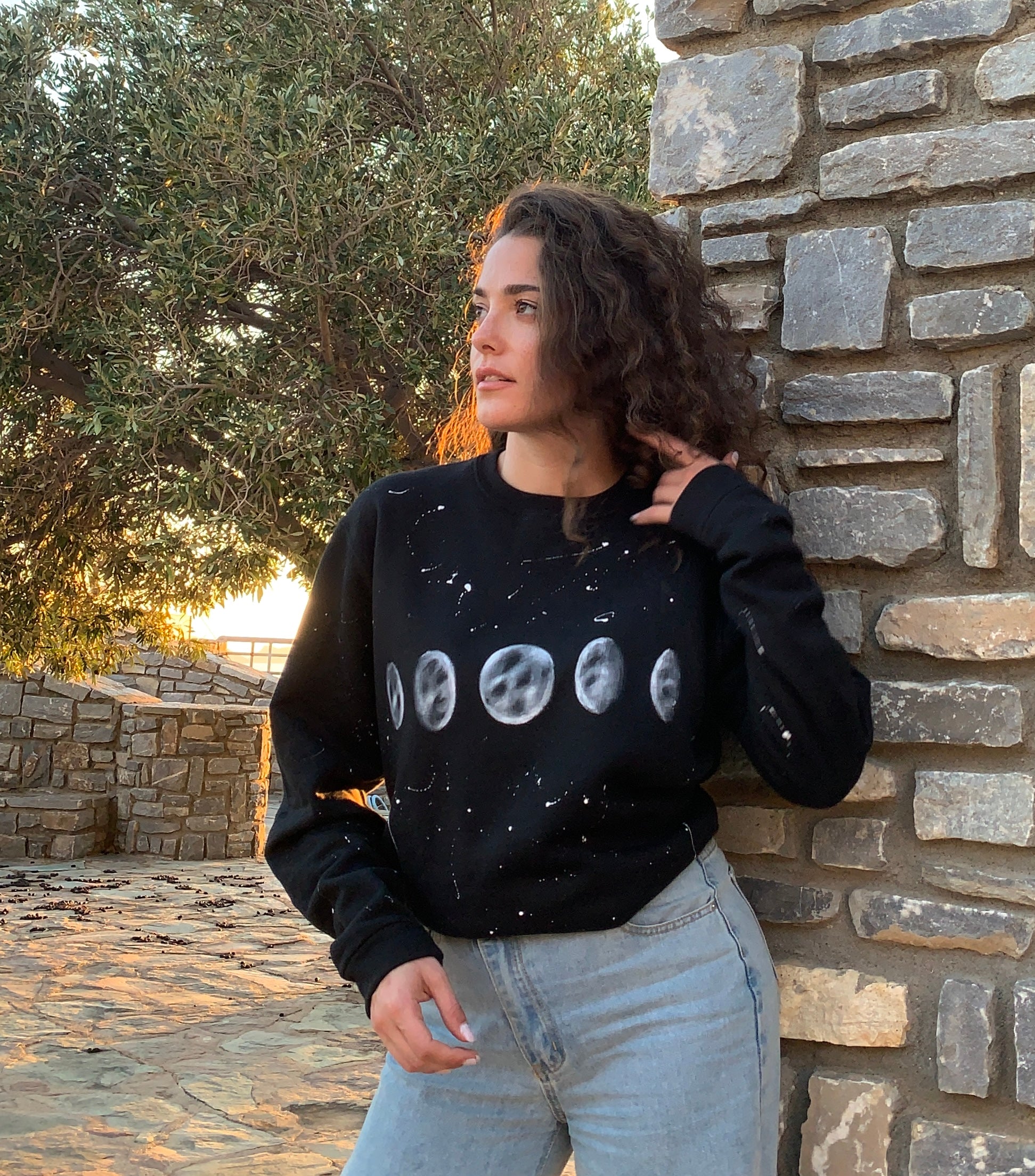 Black unisex handpainted sweater - “moon”