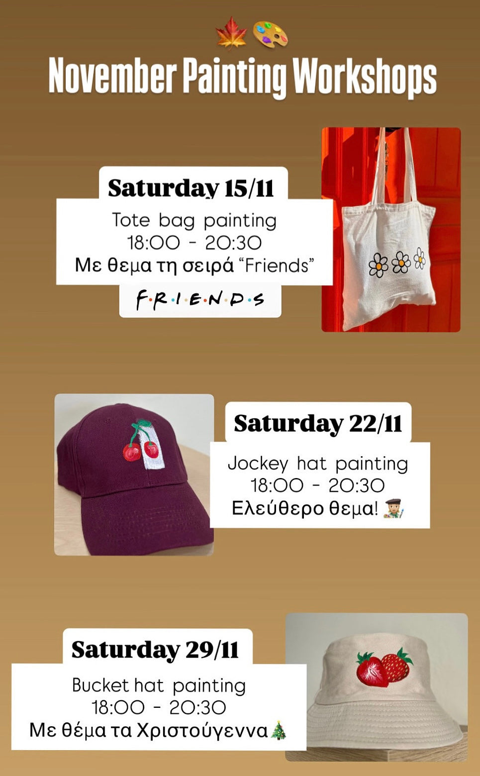 🌱22/11, 18:00 -20:30 / Ζωγραφική σε καπέλα jockey